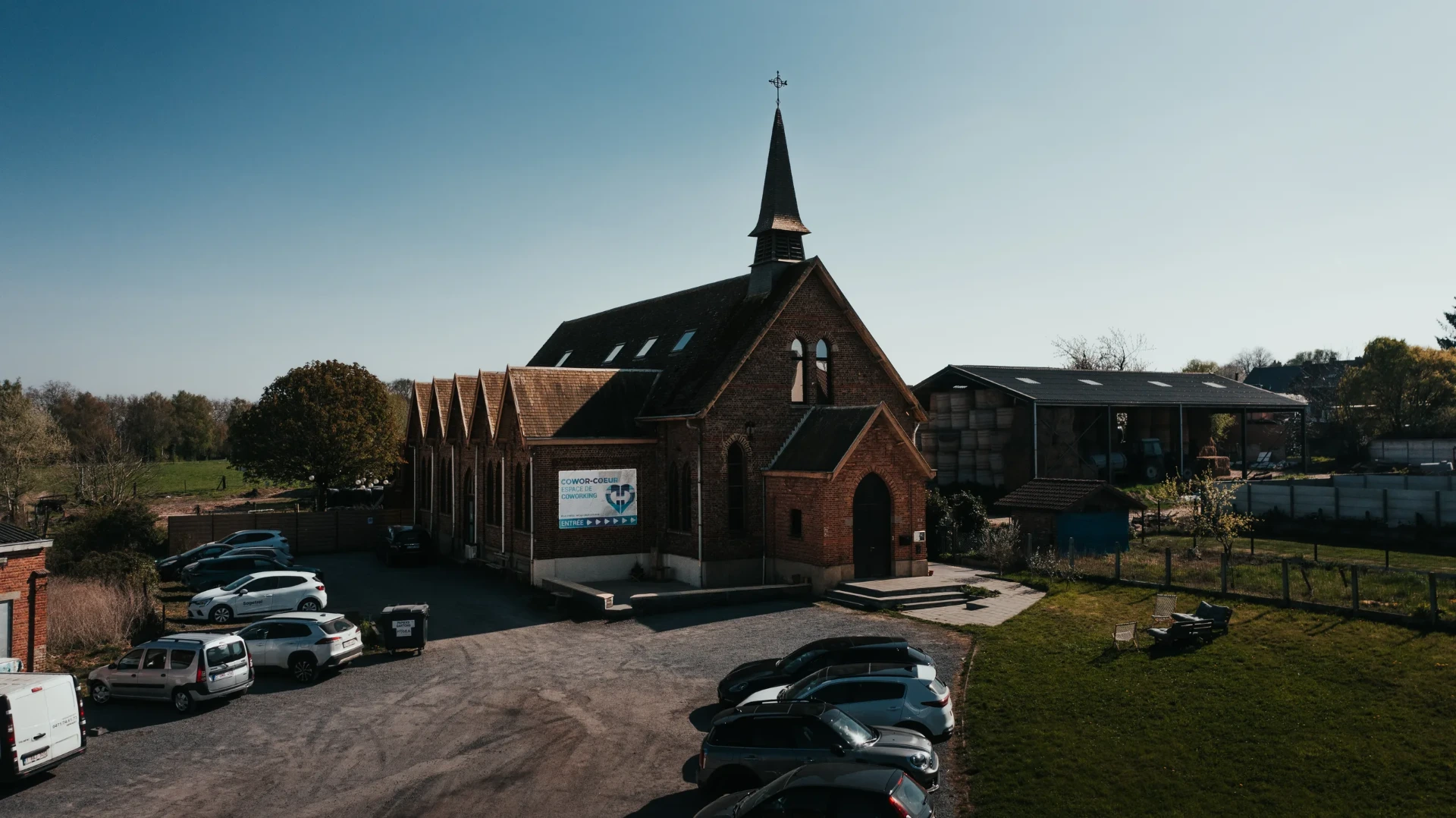 Accueil dans un lieu atypique : une église réaménagée en espace de networking.